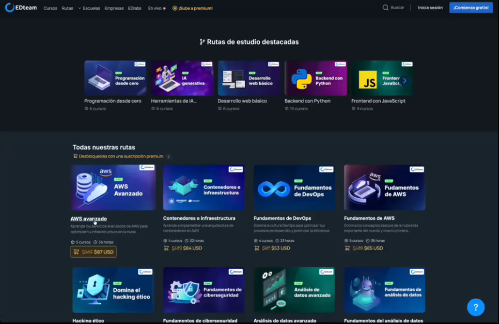 Creamos rutas de aprendizaje especialmente para guiarte en las herramientas y conocimientos más demandados en el mercado laboral. ¿Con cuál vas a empezar?